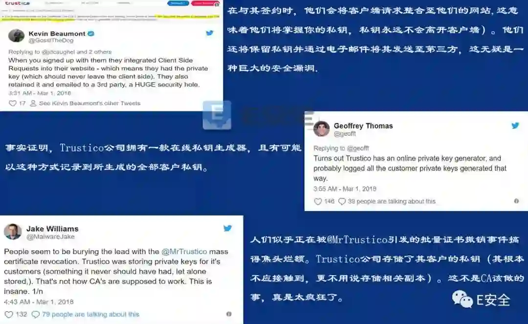 此外,根据多位安全研究人员们的意见,行业可能需要全面调查各 SSL 经销商是否存在记录客户SSL私钥的行为。