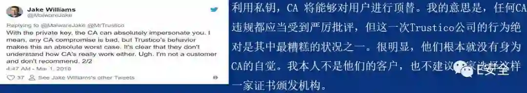 Trustico 公司总经理 Zane Lucas 强调称,“我们认为赛门铁克证书会对我们的帐户产生损害,通过赛门铁克帐户下达的订单可能面临风险以及管理不善问题。我们一直在向赛门铁克方面提出质询,但后者在一年周期内始终示作出回应。赛门铁克公司根本无视我们的担忧,这将直接给未来的安全事故埋下祸根。”