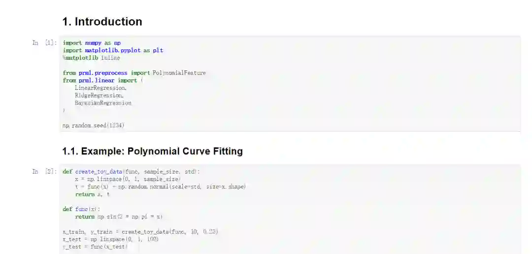 【导读】最近GitHub上网友ctgk更新公布了Python3实现的经典机器学习图书《Pattern Recognition and Machine Learning》中的代码。在它之前曾有过Matlab版本,而新公布的版本采用机器学习领域最流行的python代码实现,比较符合大家的使用习惯。最重要的是代码以Jupyter notebook形式呈现,可视化结果非常适合边看书边调试代码。专知内容组特定整理PRML相关资料,供大家参考学习。