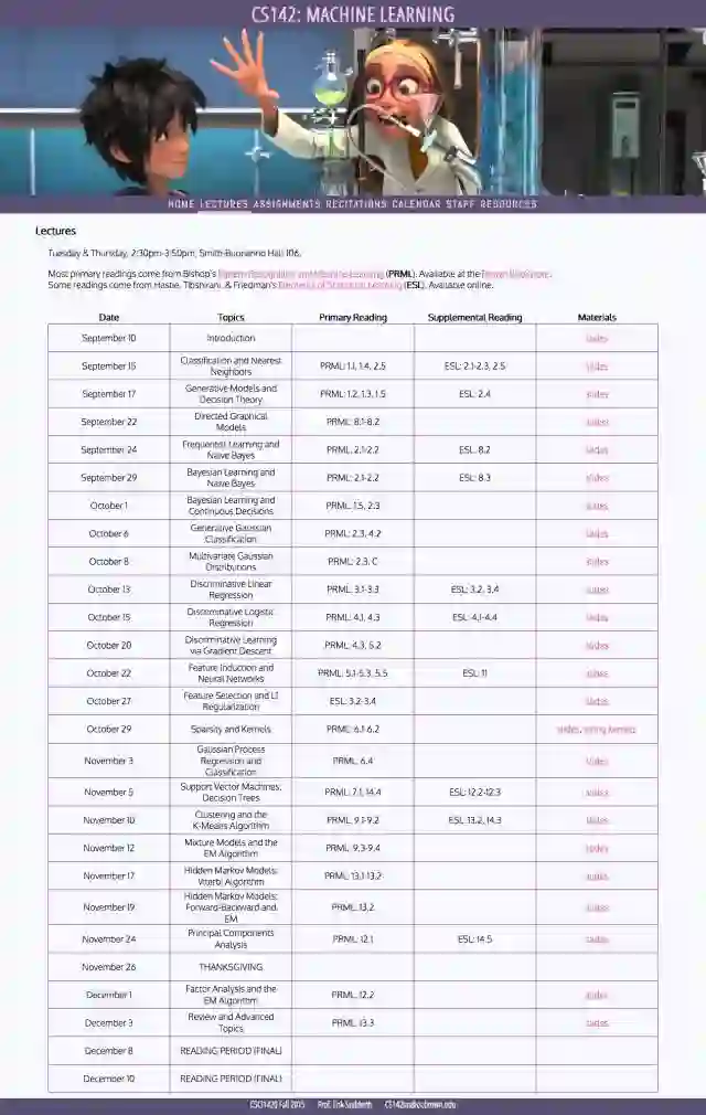 布朗大学 CSCI1420 《机器学习》 主要参考用书采用了PRML,内容安排也和PRML一致,共23课。