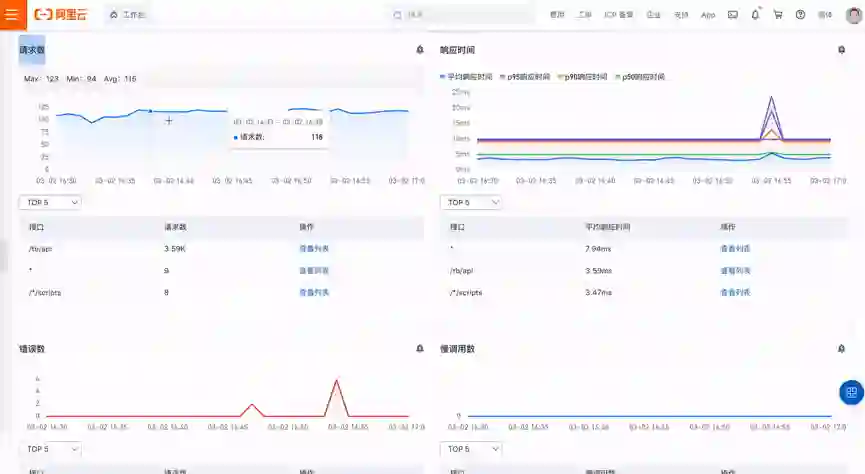 因此,在可观测性平台产品设计上需要以指标、链路、日志为基本,向外集成阿里云自家的各类云服务,同时也支持开源产品数据接入,将关键上下文信息关联起来,方便不同背景的工程师理解,进而加速问题排查。信息没有有效地组织就会产生理解成本,信息粒度上以事件 ->指标 ->链路 ->日志由粗到细地组织到一个页面中,方便下钻,不需要多个系统来回跳转,从而提供一致体验。