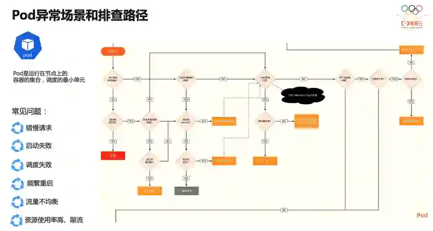 再往下一层是提供真正工作负载能力的 Pod。Pod 重点关注是否有错慢请求,是否健康,资源是否充裕,下游依赖是否健康等