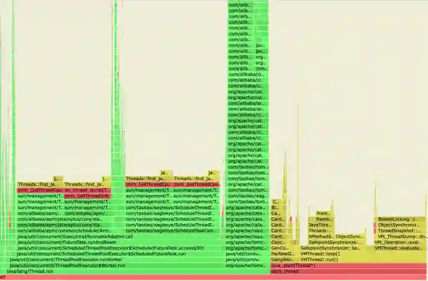 第二个例子是应用本身慢的例子,这时候自然会问具体哪一步、哪个函数造成了慢,ARMS 应用监控支持的火焰图通过对 CPU 耗时定期采样(如下图),帮助快速定位到代码级别问题。
