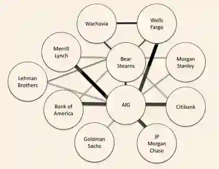 有了这个模型,我们就可做推演了。可以想象如果AIG倒闭会发生什么?使用数学推导,我们知道其他机构就会拿不到保险金,他们也会跟着倒闭,结果很可能是灾难性的连锁反应。