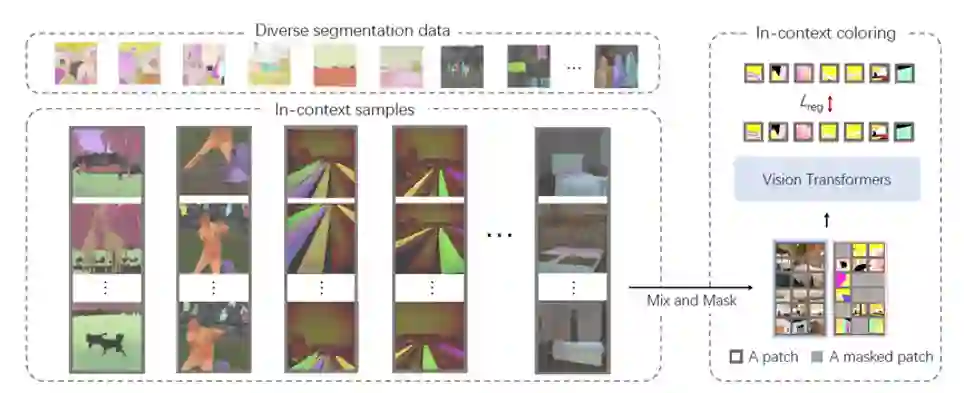 SegGPT 将不同的分割任务统一到一个通用的上下文学习框架中,通过将各类分割数据转换为相同格式的图像来统一各式各样的数据形式。