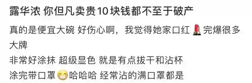 而死忠粉亦风也坦言,十几元一支的价格让她忐忑,如果自己对露华浓一无所知,根本不敢放心买。