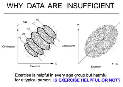 Pearl在报告中提到,他非常反对仅仅依赖数据的文化,这只是一种数学的操作。举例一个统计学中的经典例子来说:“锻炼身体是否有利于健康?”