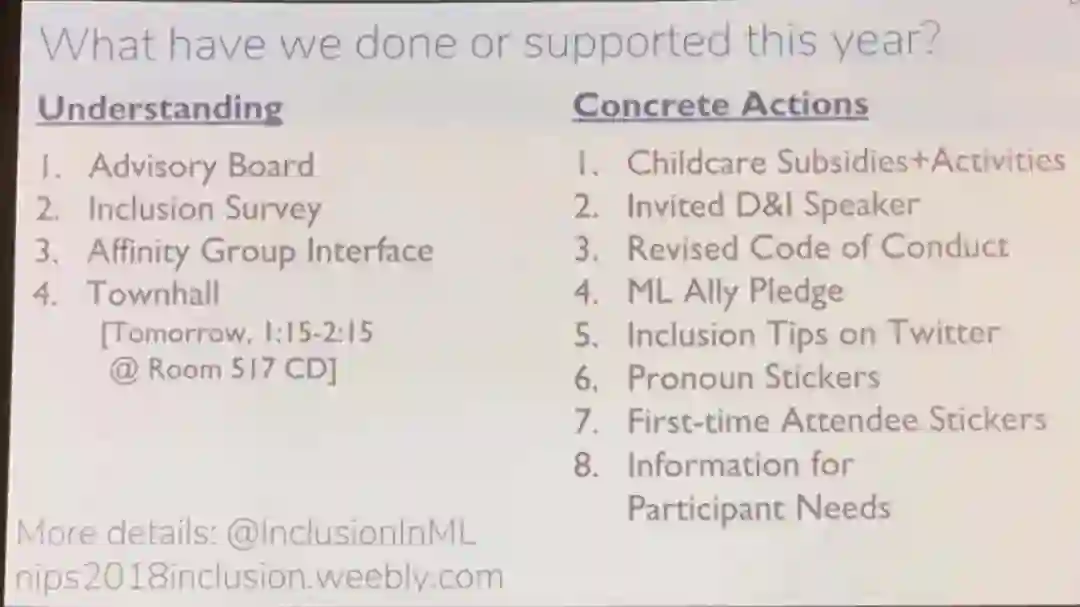 组委会今年特别提及了到四场 workshop,分别是 WiML,Black in AI,LatinX in AI,Queer in AI,宣扬反对歧视和偏见。