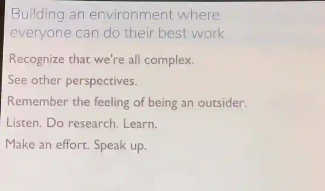 为了将会议办好,组委会在今年也做出了很多努力,如设立 advisory board, inclusion survey ,邀请 D&I 讲者,在 Twitter 上提供小贴士等。