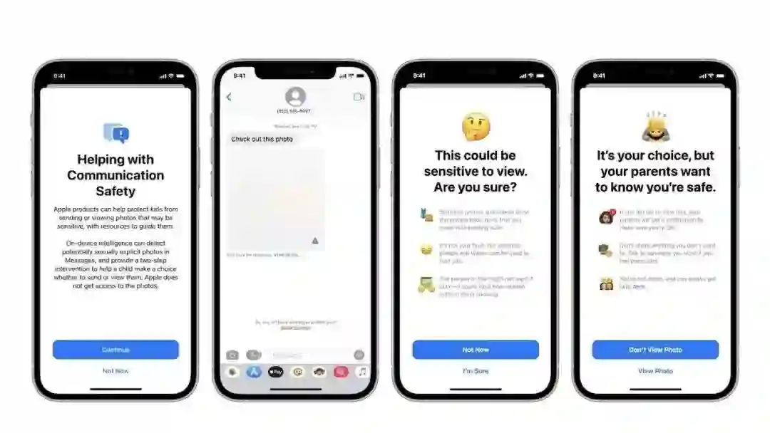 新增通讯安全功能。此功能主要是针对未成年,当从未成年的设备接收或发送暴露照片时会自动进行模糊处理,还会发出警告,通知儿童及其父母。