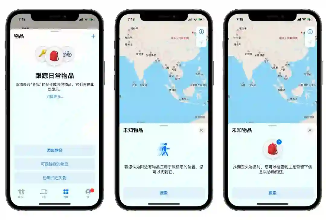 增强查找物品功能。支持用户扫描可能正在跟踪它们的 AirTag 或启用“查找”功能的物品。测试版中,查找应用“物品”一栏会出现“可能跟踪我的物品”选项。用户可点击该选项扫描附近可能用于跟踪其位置的物品。