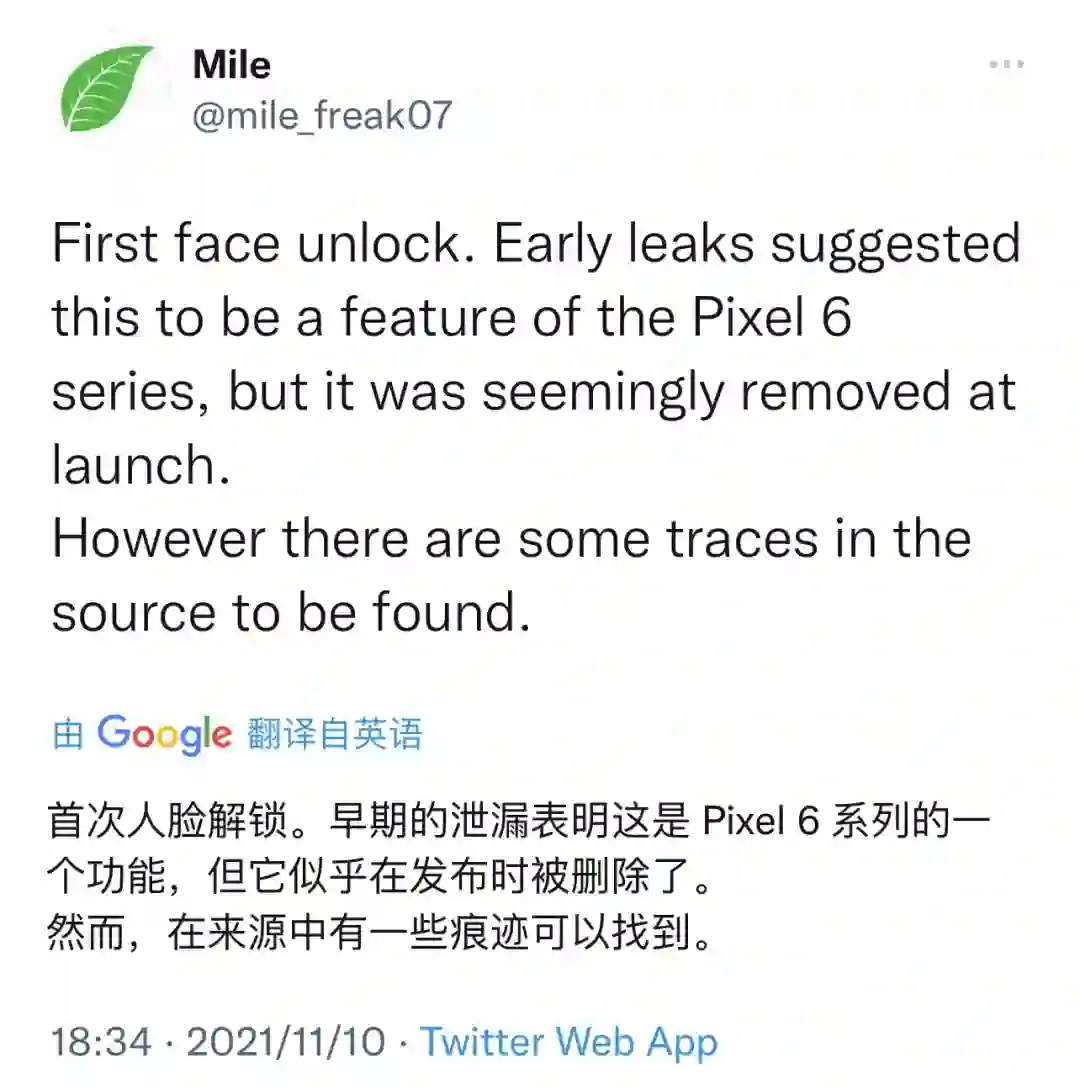 近日关于谷歌 Pixel 6 和 Pixel 6 Pro 出现陌生人可指纹解锁,解锁很慢等问题时,大家才知道这两款机型不支持面部识别解锁功能,但近期 XDA 论坛开发者 @ Freak07 爆料,在一份谷歌的开发文件中找到了 Pixel 6 和 Pixel 6 Pro 两款机型在开发阶段支持面部解锁的证据。