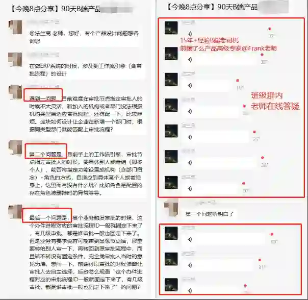 ▲老师在《90天B端产品经理实战班》社群为大家答疑