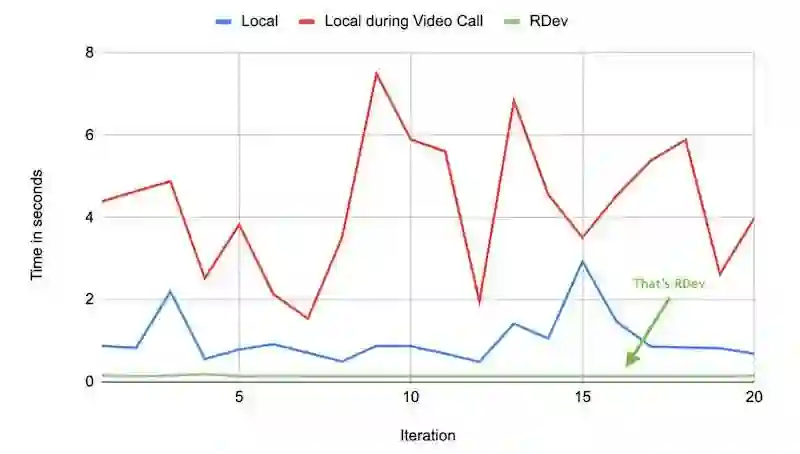 我们将 RDev 与开发者最喜欢的 IDE 集成,利用了远程 SSH 功能,提供无缝的开发体验,让开发者有一种在本地开发的感觉。LinkedIn 的一个大型 Play 应用程序的平均构建时间如下图 2 所示。很明显,在 RDev 中,构建时间要短得多。