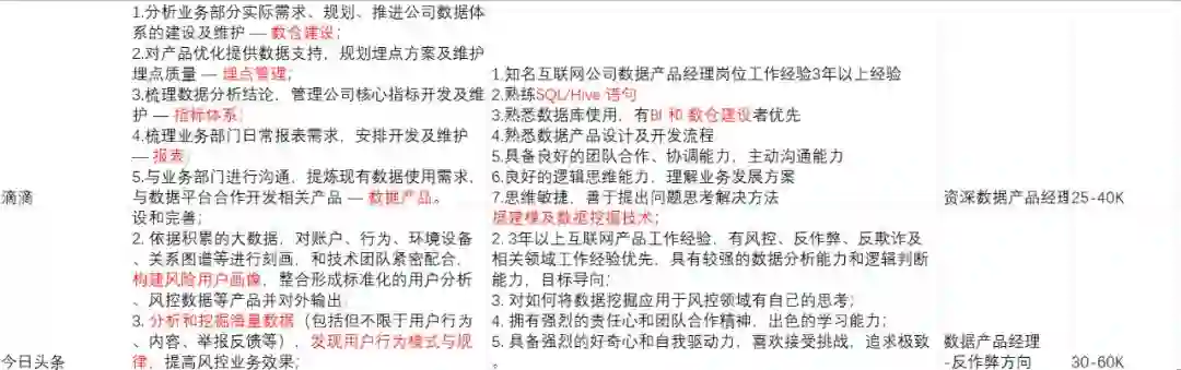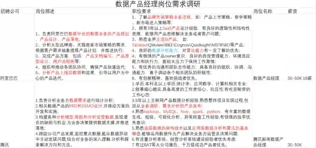 教研团队在初期针对市场上数据产品经理岗位要求、职能、薪资等做了深度调研。