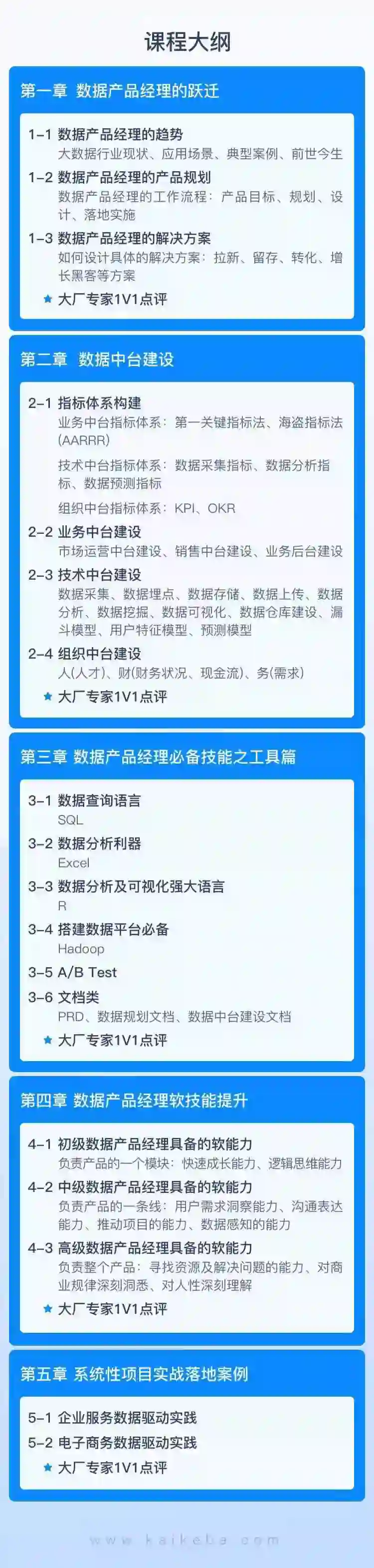 开课吧教研团队联合众多一线数据产品专家打造了这门