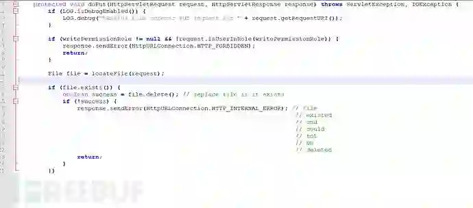 下载源码进行分析,可以看到ActiveMQ 中的 FileServer 服务允许用户通过 HTTP PUT 方法上传文件到指定目录,可以看到第二处的if相当于没有对用户身份进行校验。