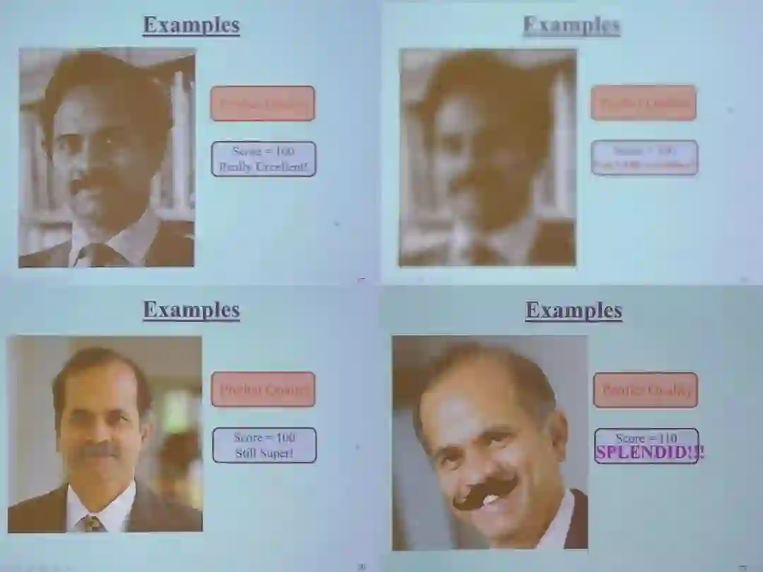 当然,话题离不开主人公。他开始用Rama的照片作为输入图像,可是不管如何扭曲或加噪,实时输出图像质量指数均为100,并加以不同的Comments:really excellent,can’t hide excellence,still super,splendid等,大家都忍俊不禁。