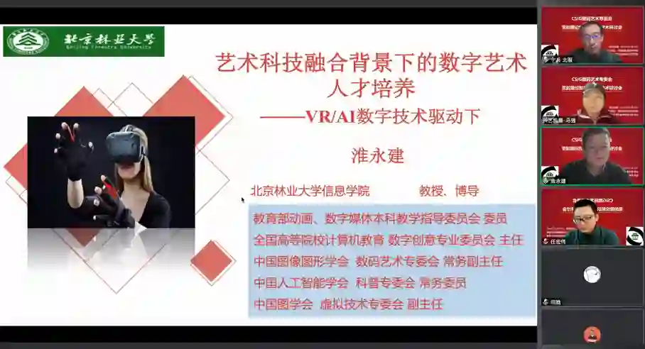 淮永建教授作了题为“艺术科技融合背景下的数字艺术人才培养”的报告。报告围绕艺术科技融合背景下,如何运用VR/AR数字技术驱动数字艺术人才培养。