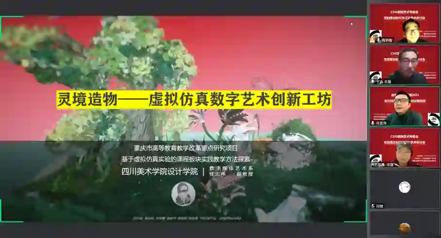 任宏伟老师作了题为“数字艺术创作课程教学体会分享”的报告。该报告介绍了数字媒体虚拟仿真板块课程的概述、虚拟仿真数字艺术创新工坊课程设置、虚拟仿真教学中的方法探索与内容创新等内容,并总结课程建设以实验带动教学,运用新技术方法辅助学生理解技术,使其为艺术设计服务,激发学生创新创业的潜能。