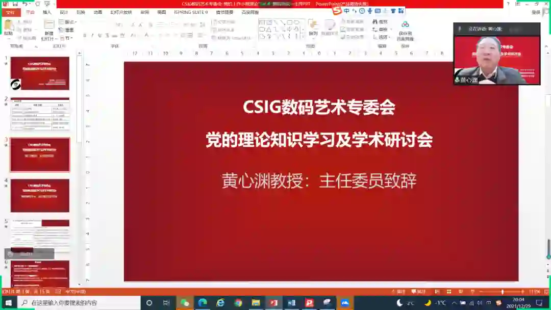 2021年12月29日,CSIG数码艺术专委会党的理论知识学习及学术研讨会成功召开,会议由中国图象图形学学会主办,中国图象图形学学会数码艺术专委会承办。由于疫情原因,会议于线上举办,学术报告进行在线直播与研讨。会议由专委会秘书长程明智教授主持,数码艺术专委会70余名委员、5名候选委员参加了本次研讨会。