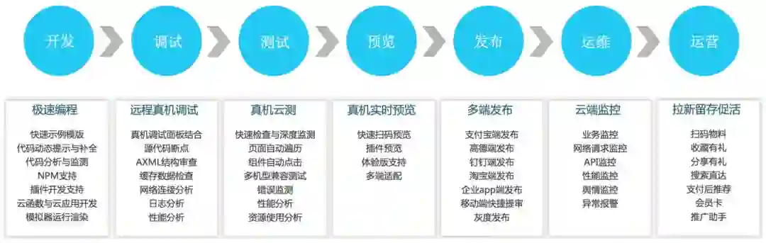 平台互通:开发者可以在入驻的开放平台管理投放到所有端的小程序,包括小程序的开发、调试、测试、发布、运维和管理等一系列的工作。
