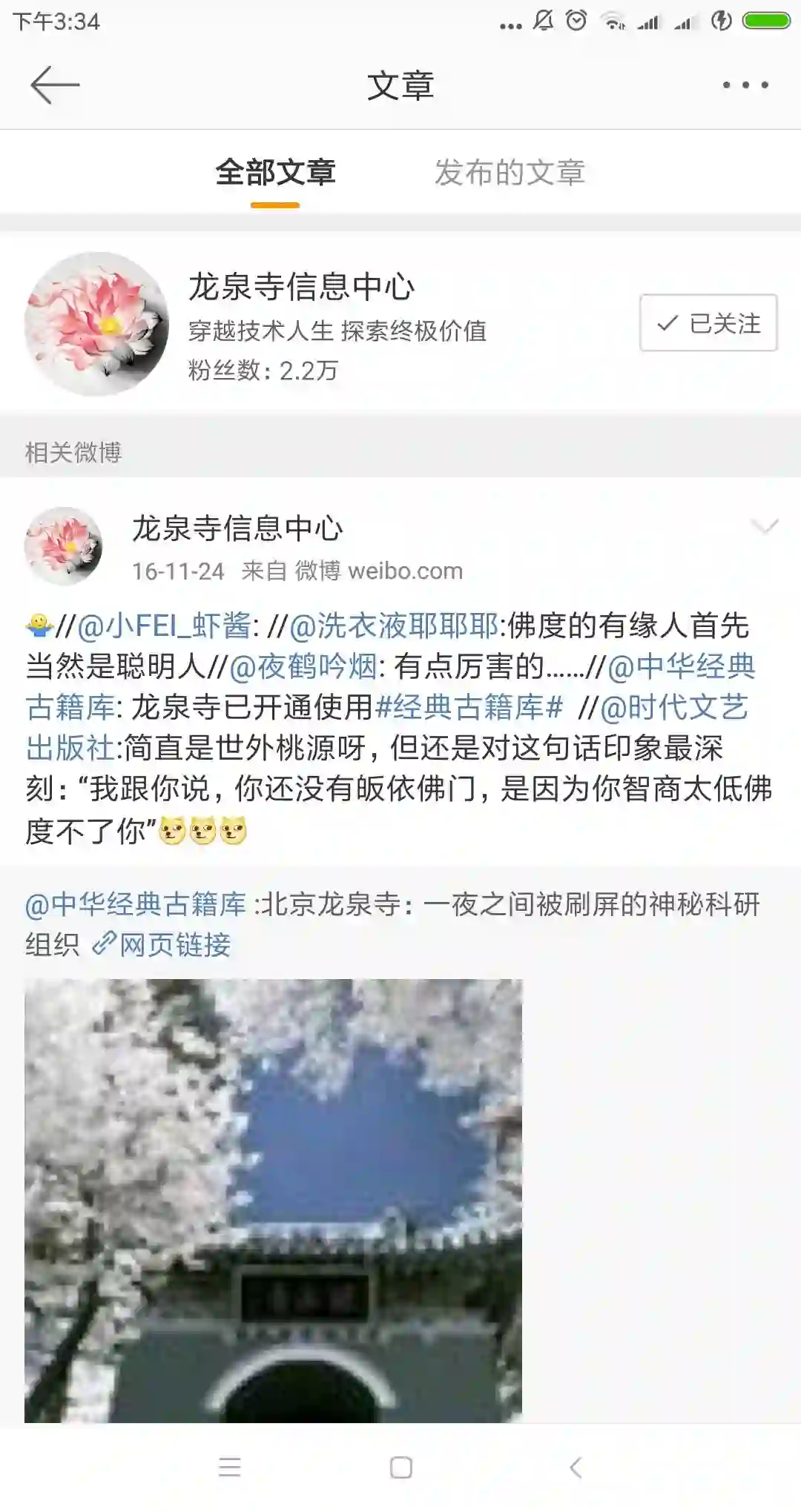 随后,贤信法师创办了龙泉寺信息技术组。开了新浪微博“龙泉寺信息中心”,签名是:“穿越技术人生,探索终极价值。”