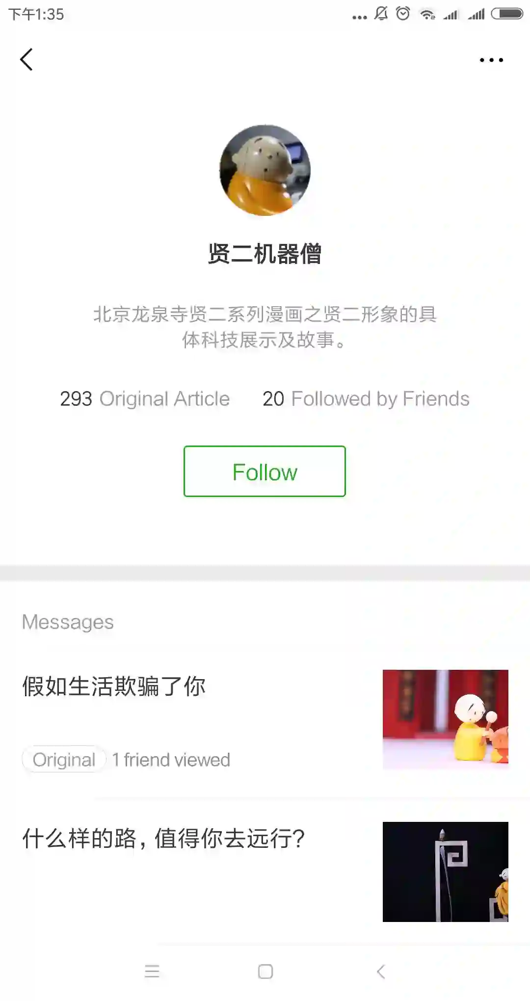 再再后来,有一家科技公司,想给龙泉寺开发一个机器人扫地僧,来取代真人扫地僧人。可是,龙泉寺说扫地是修行,真人扫地僧的角色不能被替代。