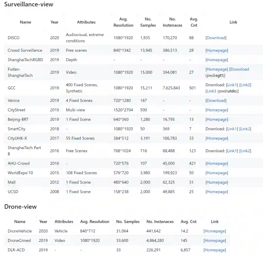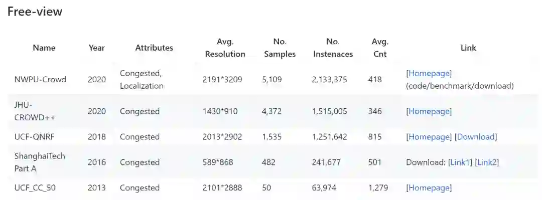 系统整理了非常多的数据集,并都提供了下载链接,整理的很用心。比如NWPU-Crowd、JHU-CROWD++等。
