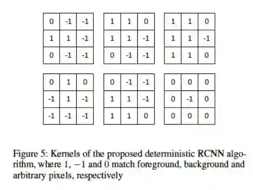 在第三个实验里,文章继续对图形进行计算机视觉的形态学预处理。以下几个预定义的核卷积算子,以此来提取相关的拓扑信息,而不是直接用原始图像来进行 DCNN 处理。但作者经过尝试发现,这些核卷积算子只能预定义,而不能通过一般的反向传播学习来达到收敛。