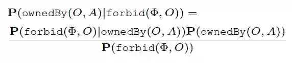 因为用户对物品的拥有权不是简单的 1 对 1 对应的问题,而且一个用户对物品的所有权以为着一系列的责任和权利,另外一件物品可能被几个人同时拥有。为了完整地表达用户,所有权,规范这三者关系,就需要把物品、主人和(物品的)规范这些都包含在不同的知识表达中。因此文章把拥有权问题建模变成三个子问题:1)用谓语逻辑把拥有权和物品联系起来; 2)用数据库维护针对物品的动作权限(在文中只是针对有主人和无主人的物品);3)用概率图模型维护物品和各用户的所有关系。