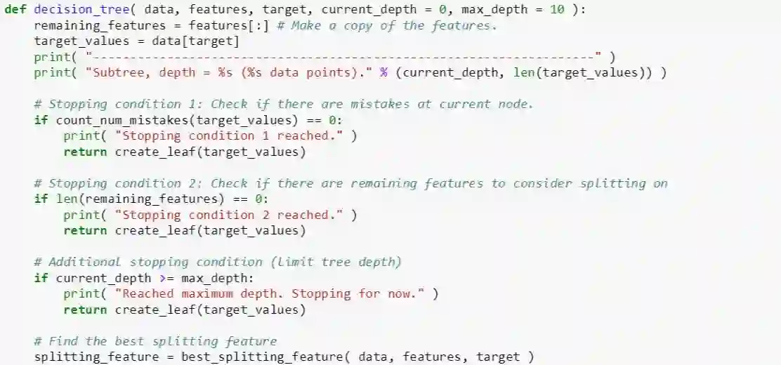 利用上面三个子函数,斯蒂文可以很轻松的构建树模型,同时使用以下三个停止条件: