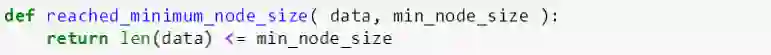 如果 reached_minimum_node_size 返回值小于 min_node_size,创建叶子 (提前停止条件 2)