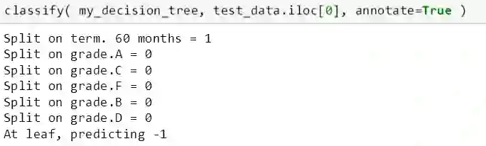 用上树来看看第一个测试数据上的分类结果,从下面信息看,这笔贷款是危险贷款 (safe_loans 的值为 -1)
