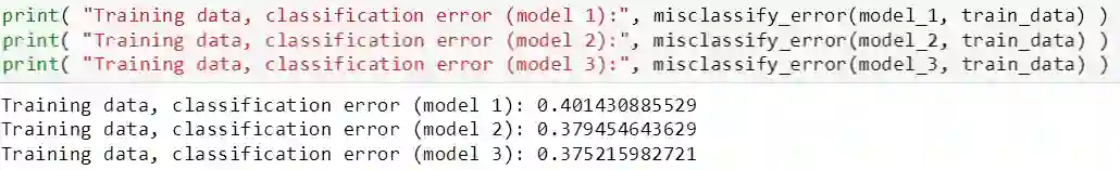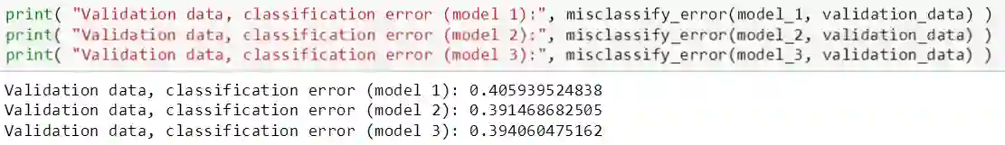 从模型 1 到 3,它们的复杂度是递增的,由下图可知它们的训练误差是递减的 (符合逻辑),但是模型 3 的验证误差比模型 2 的大,这说明模型 3 过拟合了数据。