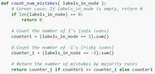 如果误分类个数 (用 count_num_mistakes) 为 0,创建叶子 (停止条件 1)