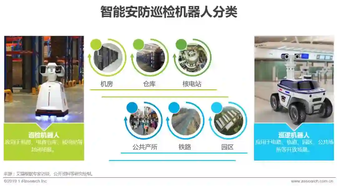 继2005年国内第一台电力巡检机器人投入使用之后,机房巡检机器人、消防机器人等产品开始陆续出现在市场中。2015年是一个发展节点,业内一众玩家捕捉到赛道的潜力,开始致力于人工智能、物联网、导航技术等新兴技术的研发,成长起如高新兴机器人、国自机器人、安泽机器人等一批业内优秀的企业,但当时市场需求较为盲目,多以展示型需求为主,市场空间有限,行业也一度陷入迷茫期,但随着智能机器人在安防行业的落地试用,为行业找到了突破口。2018年是安防智能机器人发展元年,北京安博会中抢眼的表现、公安部门大力规划建设和年底激增的订单量都证明了其在主动安防大背景下的价值所在。未来安防智能机器人将向可移动平台方向发展,向更多应用领域开放其后台,带来更多附加价值,艾瑞也将持续关注其发展。