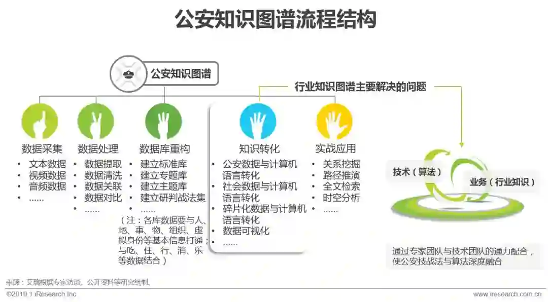 在公共安全领域,公安多年积累的实战经验与技术算法如何相互转换,是最大的行业难点,也是知识图谱主要解决的问题。公安知识图谱通过数据采集、数据处理、数据库重构、知识转化和实战应用五个步骤,运用分布式存储、关联算法、语义推理等技术,以及大量的公安专家团队与技术人员配合,来实现技术与业务的深度融合。目前,国内能够在“十亿数据节点,百亿关联边”的图谱结构下,实现秒级查询的公安知识图谱应用是较为优秀的产品标准,在国务院和公安部大力推动下,未来将有更大规模,更高数据集的知识图谱应用落地。