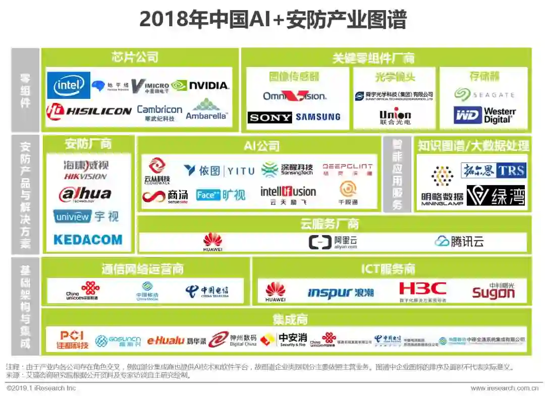 未来AI+安防行业将形成人工智能公司、安防厂商、集成商、云服务商并立的格局。市场在AI+安防建设大规模完成后,也将迎来应用与运维市场的焕发,下游运营领域将成为新战场。