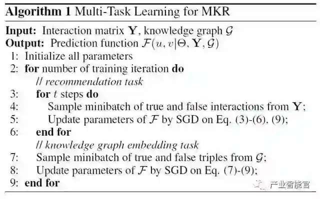 依次学习的缺点也正在于此:因为两个模块相互独立,所以无法做到端到端的训练。通常来说,知识图谱特征学习得到的向量会更适合于知识图谱内的任务,比如连接预测、实体分类等,并非完全适合特定的推荐任务。在缺乏推荐模块的监督信号的情况下,学习得到的实体向量是否真的对推荐任务有帮助,还需要通过进一步的实验来推断。