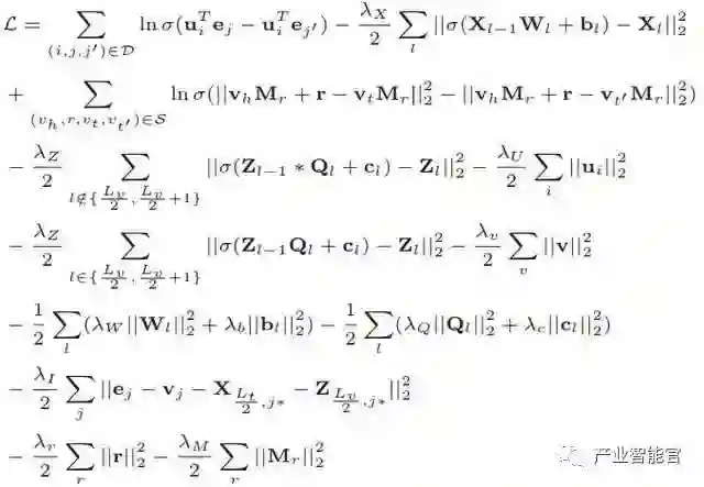我们将三种知识学习的目标函数与推荐系统中的协同过滤结合,得到如下的联合损失函数: