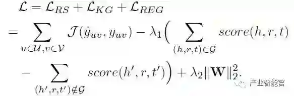 最终得到的推荐算法和知识图谱特征学习的联合损失函数如下: