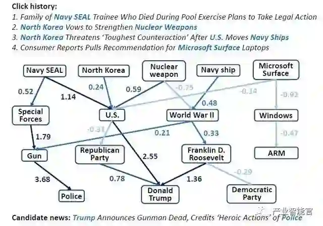 我们以新闻推荐[1]为例来介绍依次学习。如下图所示,新闻标题和正文中通常存在大量的实体,实体间的语义关系可以有效地扩展用户兴趣。然而这种语义关系难以被传统方法(话题模型、词向量)发掘。