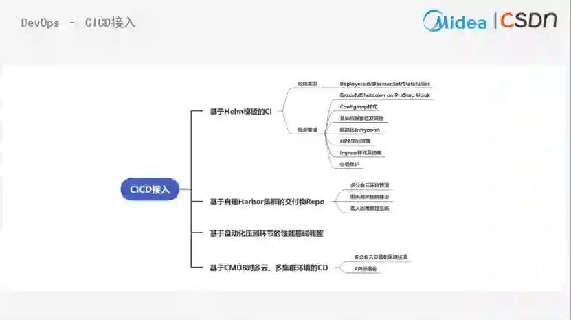 关于Dev Ops,如图2所示,基于Helm进行应用部署。在CICD接入方面,实施了以下四点: