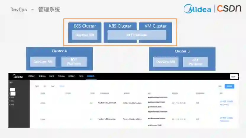 因为美的IoT应用是部署在多云和混合云上的,所以如图3基建了一套完整的一个管理平台。可以在图3中看到,多云架构中的部署管理应用。
