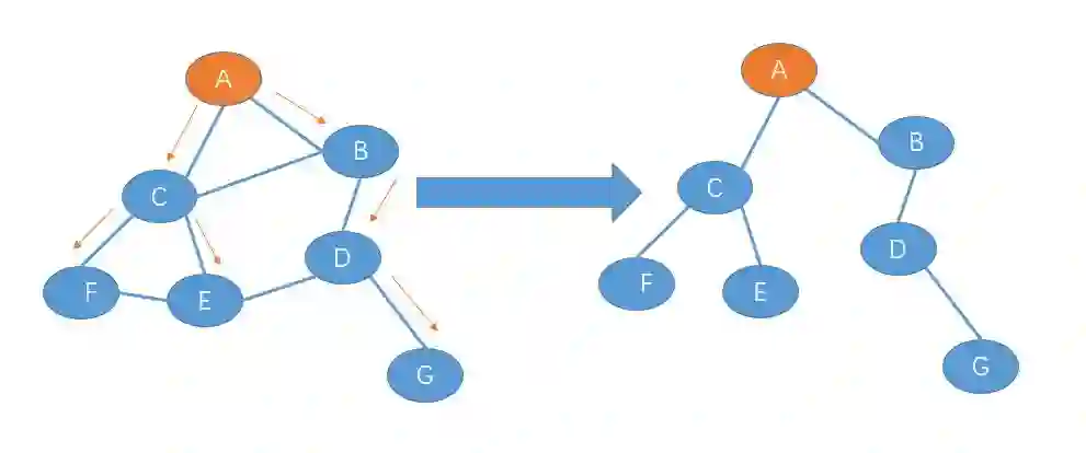 那么,如何构造一颗生成树呢?下面提供一种基于中心某个中心的方法来建立一颗生成树。注意,是生成树,不是最小生成树。