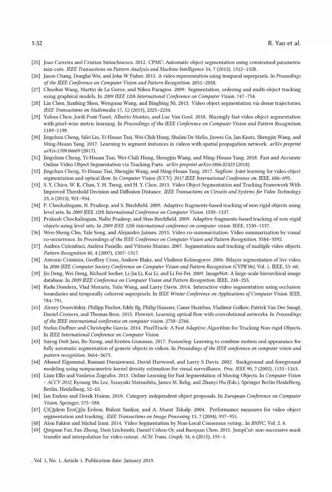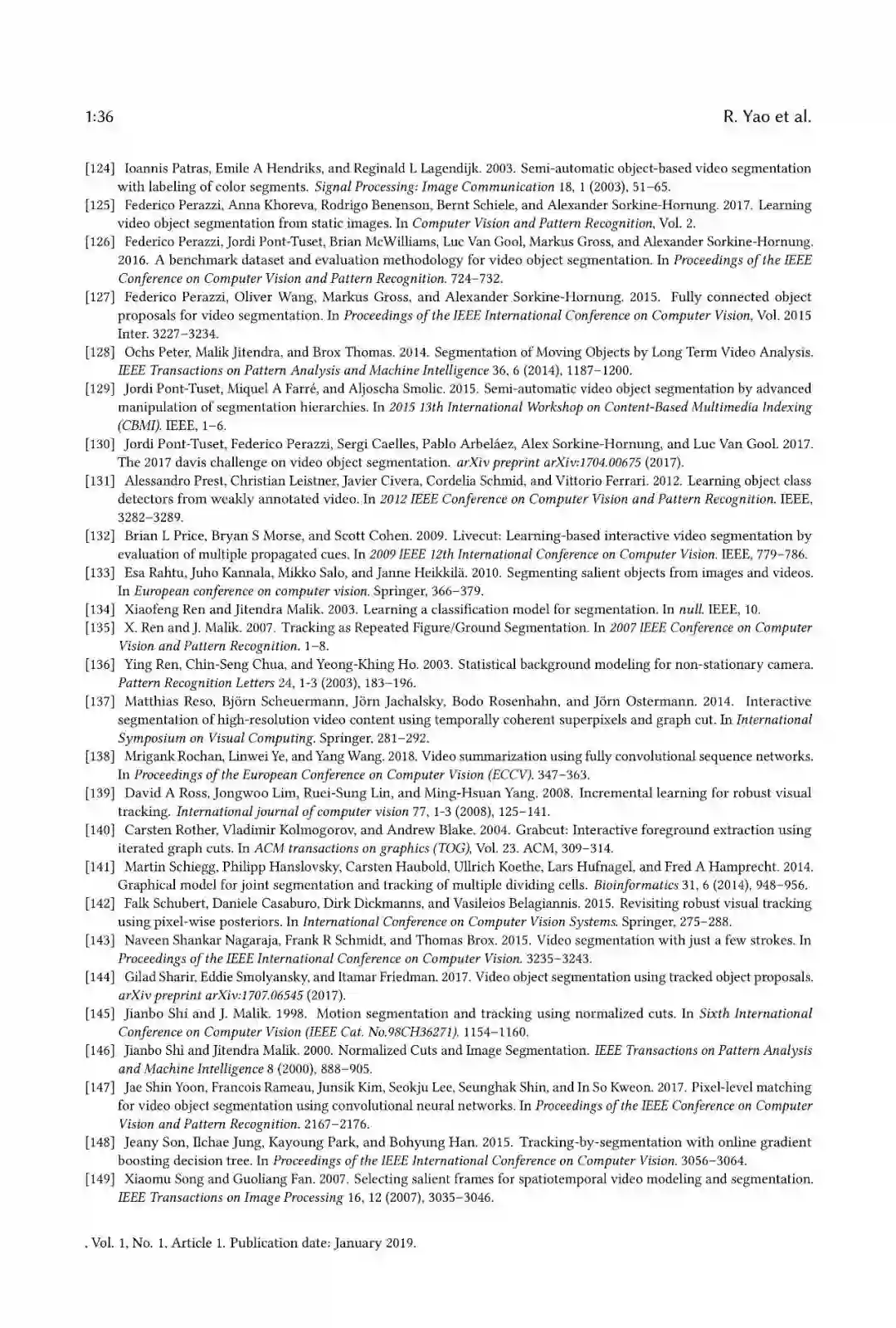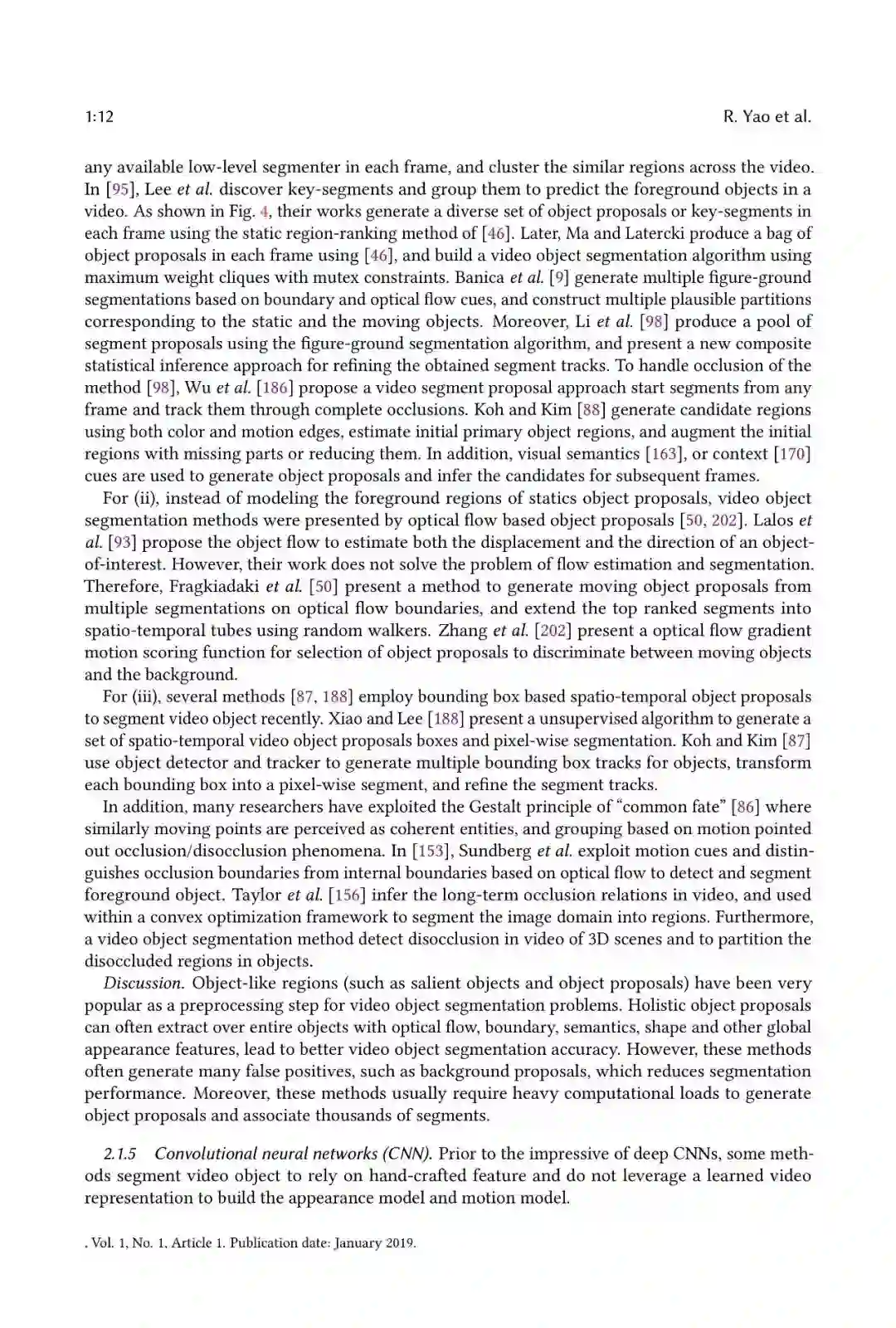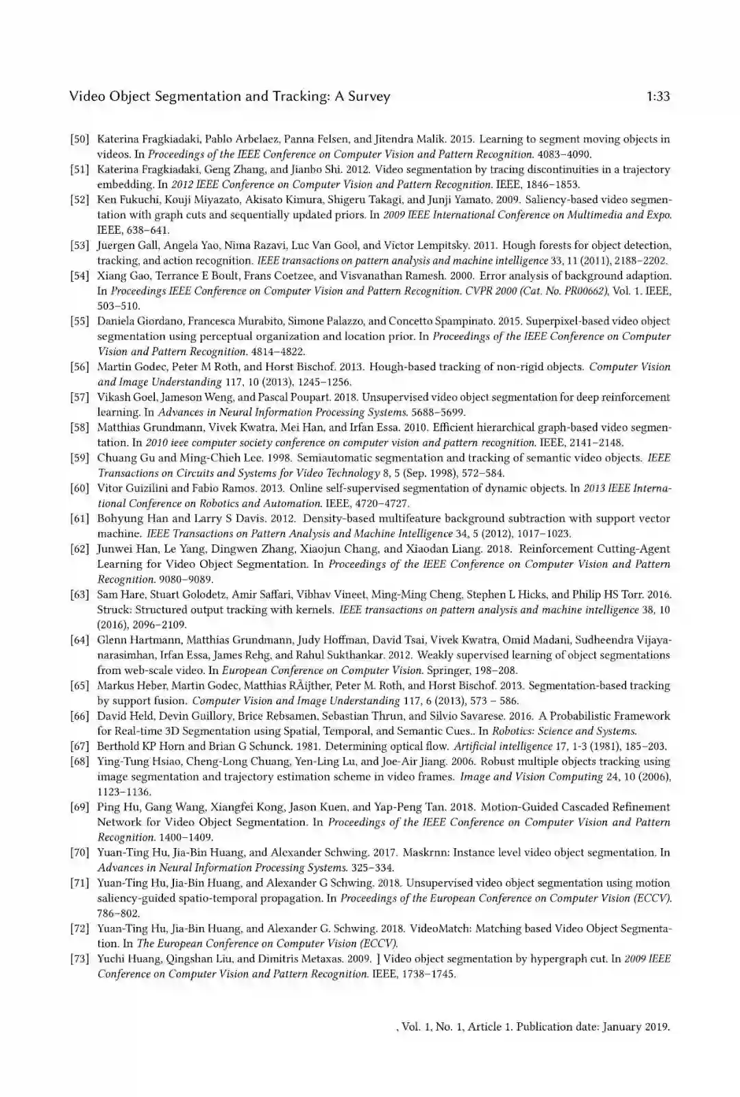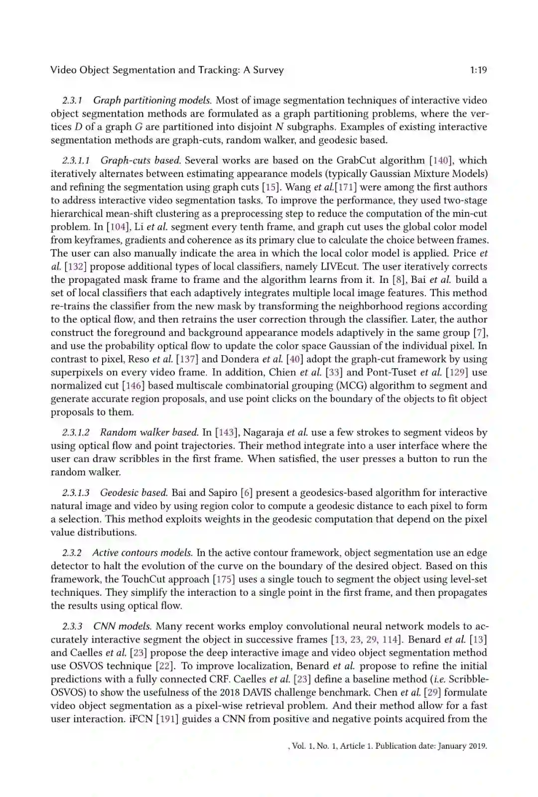在本文中,我们首先提供了现有的分类法,包括无监督视频对象分割、半监督视频对象分割、基于分段的跟踪方法等;其次,我们讨论了不同技术方法,并总结了相关视频数据集,同时整理了各种评估指标;最后,讨论了此类任务未来的发展方向。