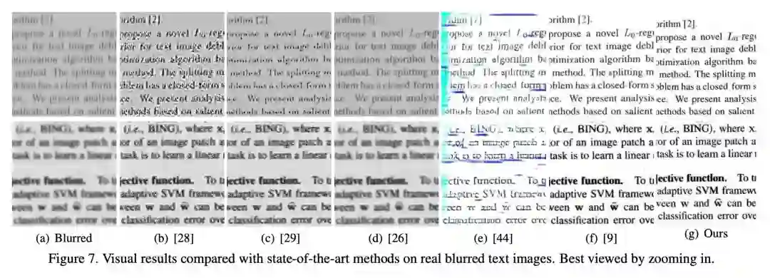 不仅仅在人脸图像去模糊上,在文本去模糊上也展示了不错的实验效果: