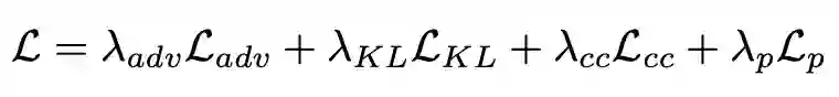 采用 Adam 优化损失,对于前 40 个时期,学习速率最初设置为 0.0002,然后在接下来的 40 个时期使用指数衰减。超参上 λadv=1, λKL=0.01, λcc=10, λp=0.1。