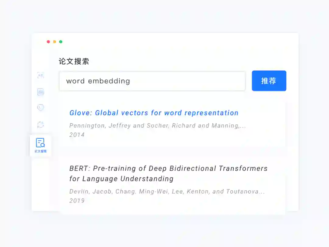 图11:语义增强的论文检索。文涌学术版能智能识别关键词语义,根据检索结果的语义相关性、论文影响力优化结果排序,使用户更容易获得所需的结果。如上图,搜索结果的标题和摘要中并不包含所输入的所有关键词,但却是这个领域的重要文章。